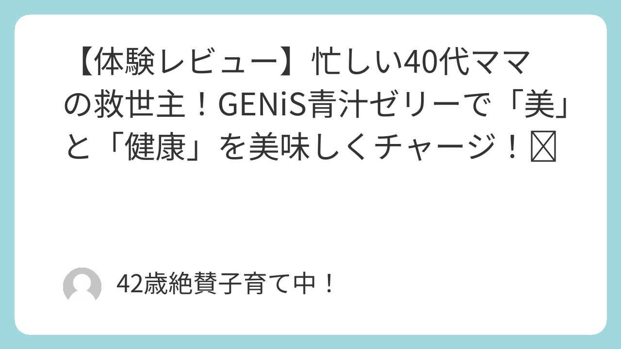「もう無理…!」朝から晩まで、仕事に子育てに駆け回る毎日。ふと鏡を見ると、そこには疲れきった顔の私が…😭 「美」も「健康」も、諦めたくない!そんな40代共働きママの私が、SNSで話題の「GENiS 青汁ゼリー クリーンゼリー」を1ヶ月間試してみました!